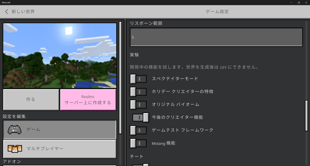 現バージョン1.19.11では、実験の項目「今後のクリエイター機能」のトグルをONにすることで、新仕様のexecuteコマンドを扱えるようになります。