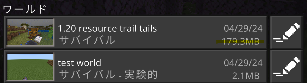 これらの影響が望ましくなければ、実績解除用のワールドデータでプレイすることも選択肢の一つとしてアリです